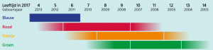 Blauw, rood, oranje en groen